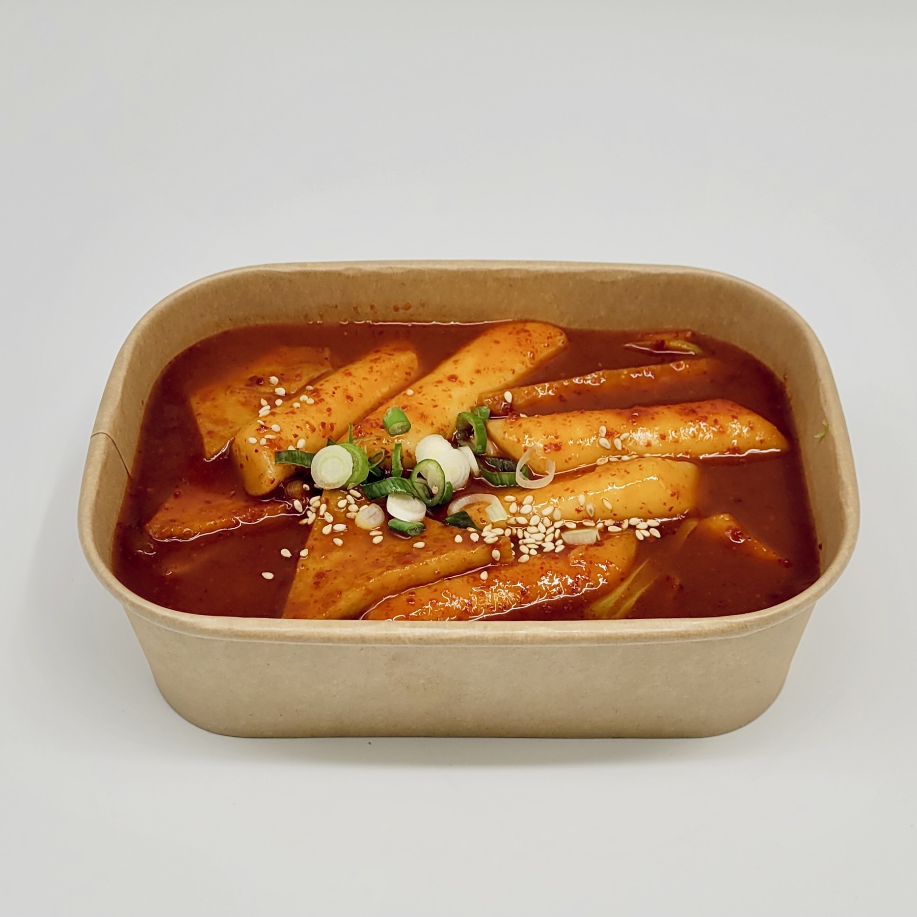 Chewy rice cakes and fish cakes in a thick, slightly sweet, and spicy red chilli sauce.