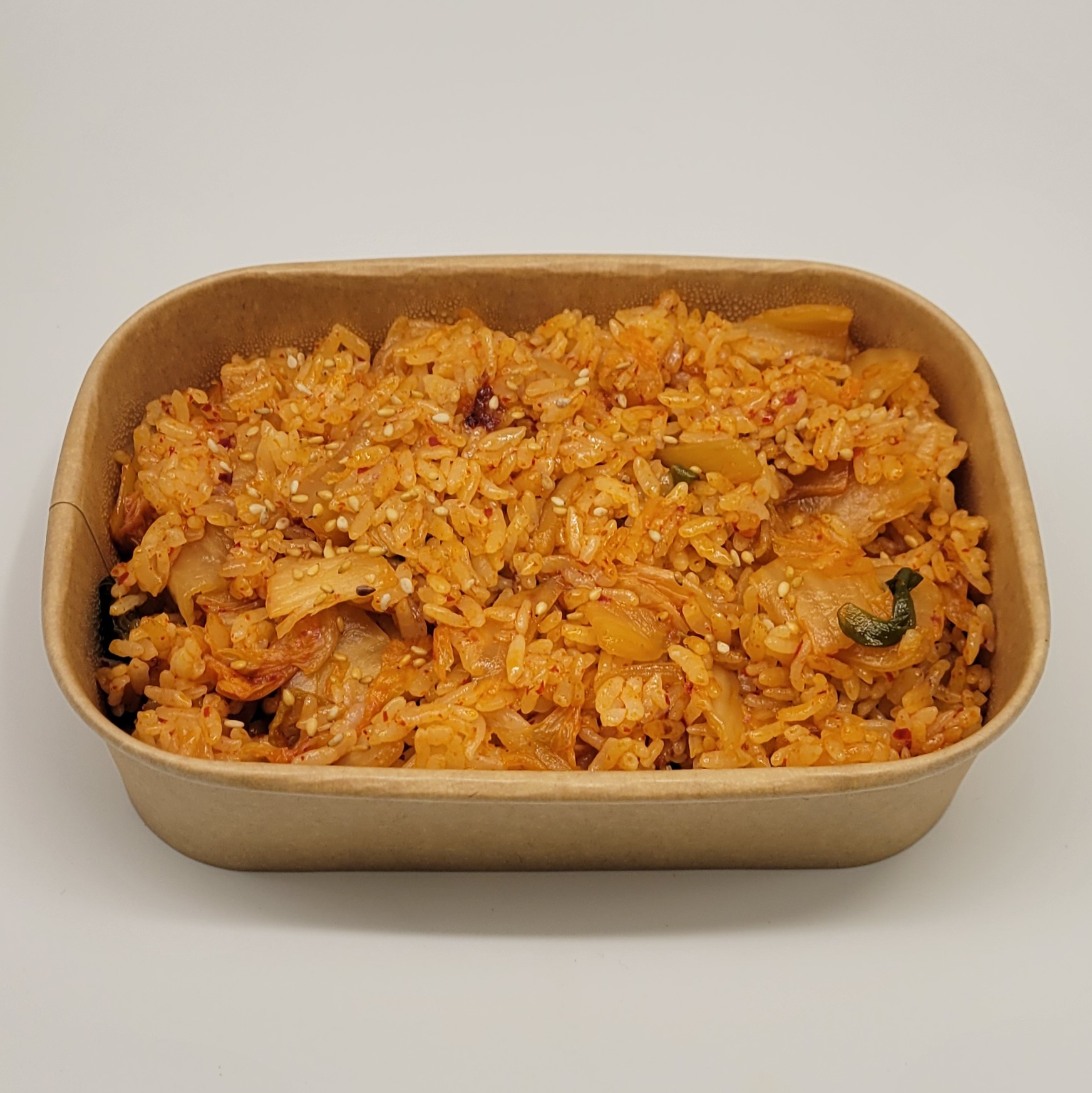 Stir-fried rice cooked with homemade Kimchi, giving it a slightly spicy and tangy. Topped with sesame seeds